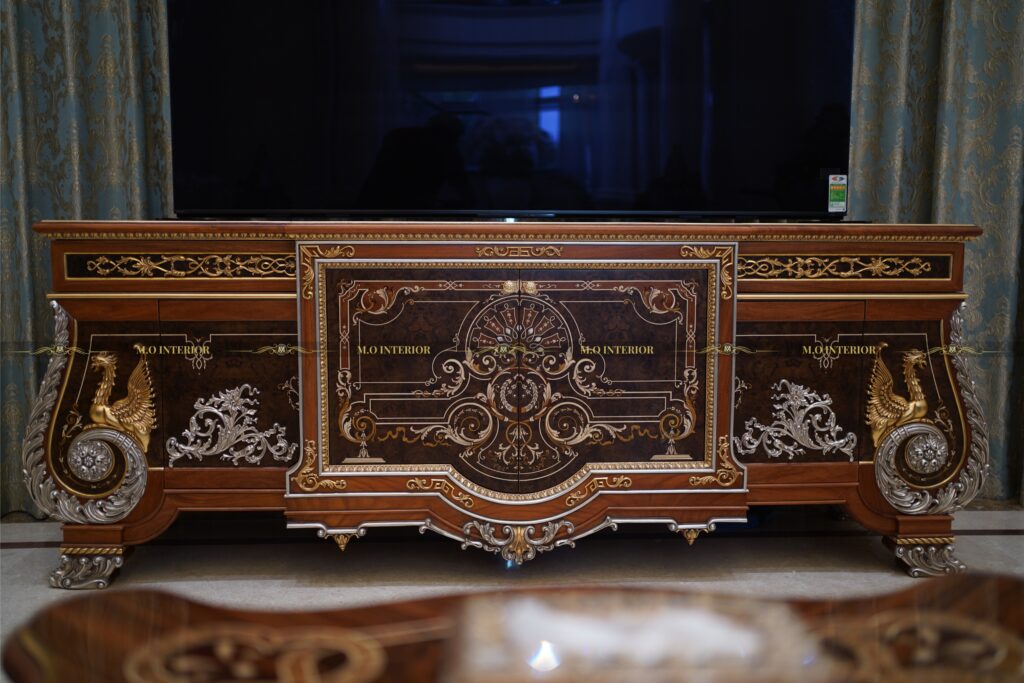 M.O Interior tự hào mang đến những mẫu kệ tivi độc bản, thể hiện rõ nét tinh hoa của phong cách Baroque.